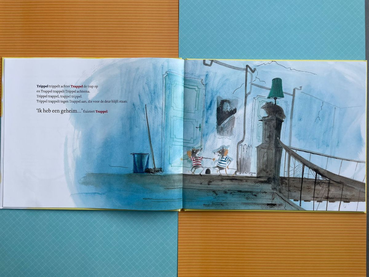 Trippel trippelt achter Trappel de trap op en Trappel trappelt Trippel achterna.