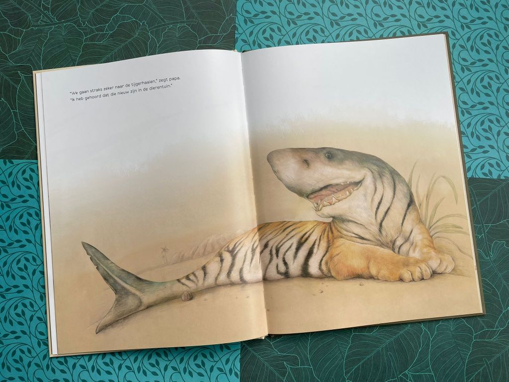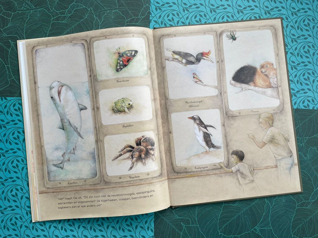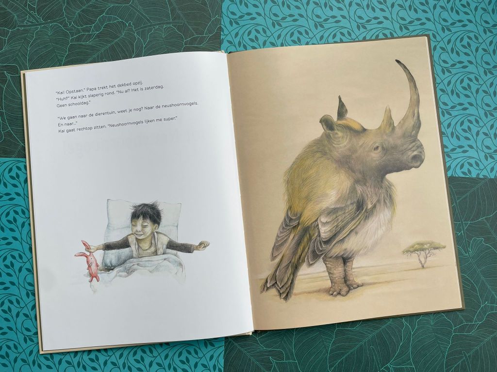 Kai kan niet wachten tot hij met zijn vader naar de dierentuin gaat. Want hij heeft zich al precies voorgesteld hoe al deze dieren eruit zien: van bigkikker tot neushoornvogel, van ezelspinguïn tot zebravink en van vogelspin tot tijgerhaai. Als je als kind deze dieren nog nooit hebt gezien, dan kun je je fantasie op de vrije loop laten, en fantaseren hoe deze dieren eruit zien. En dat heeft de illustrator van dit boek ook gedaan. Dat geeft een bijzonder beeld. De tekeningen in dit boek zijn echt prachtig!