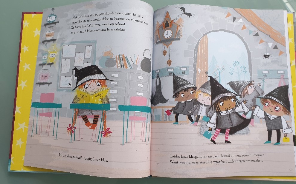 In elke klas heb je ze wel, verlegen kinderen die niet durven te praten. Als leerkracht heb ik die ervaring inmiddels en het is mooi als de kinderen opeens dingen durven te zeggen. Soms door een vriendinnetje die ze helpt. Dat gebeurt ook in het boek van uitgeverij De Vier Windstreken: Verlegen Vera, waarin heksje Vera te verlegen is tot dat er een nieuw meisje in de klas komt.