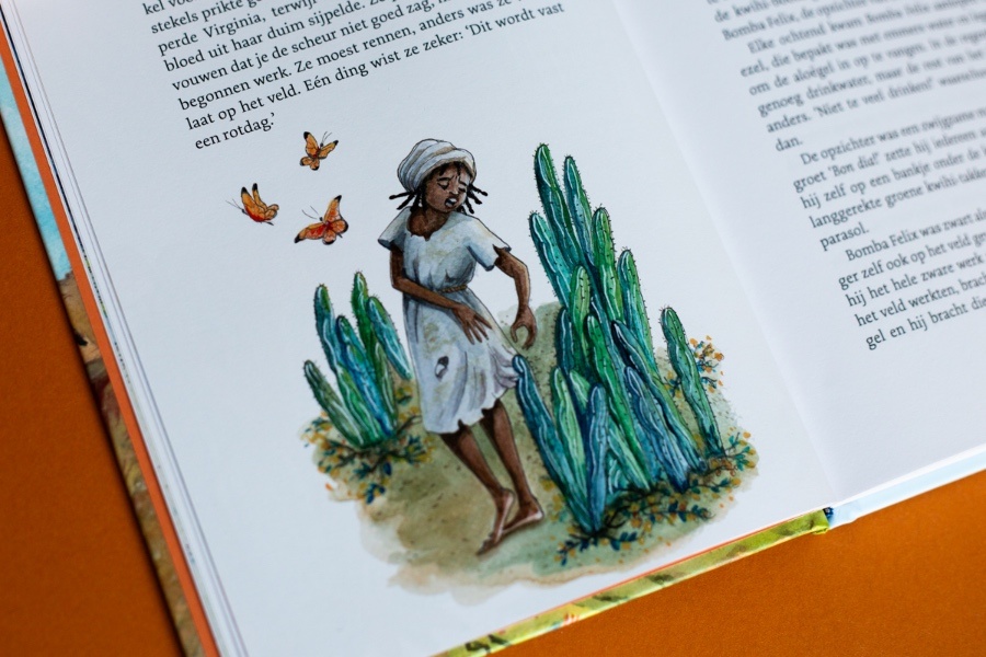 Sinds ik De reis van Syntax Bosselman heb gelezen vind ik dat er meer verhalen mogen worden voorgelezen en besproken over slavernij. Virginia, een Afefe verhaal is zo’n boek. Een jeugdboek over een meisje dat als slaafgemaakte hard moet werken op een plantage in Aruba. Daar waar de zon schijnt en de mensen Papiamento spreken. Aruba maakt als zelfstandig land deel uit van het Koninkrijk der Nederlanden. Met het verhaal over Virginia krijg je een kijkje in het zware en oneerlijke leven van de 19e eeuw.