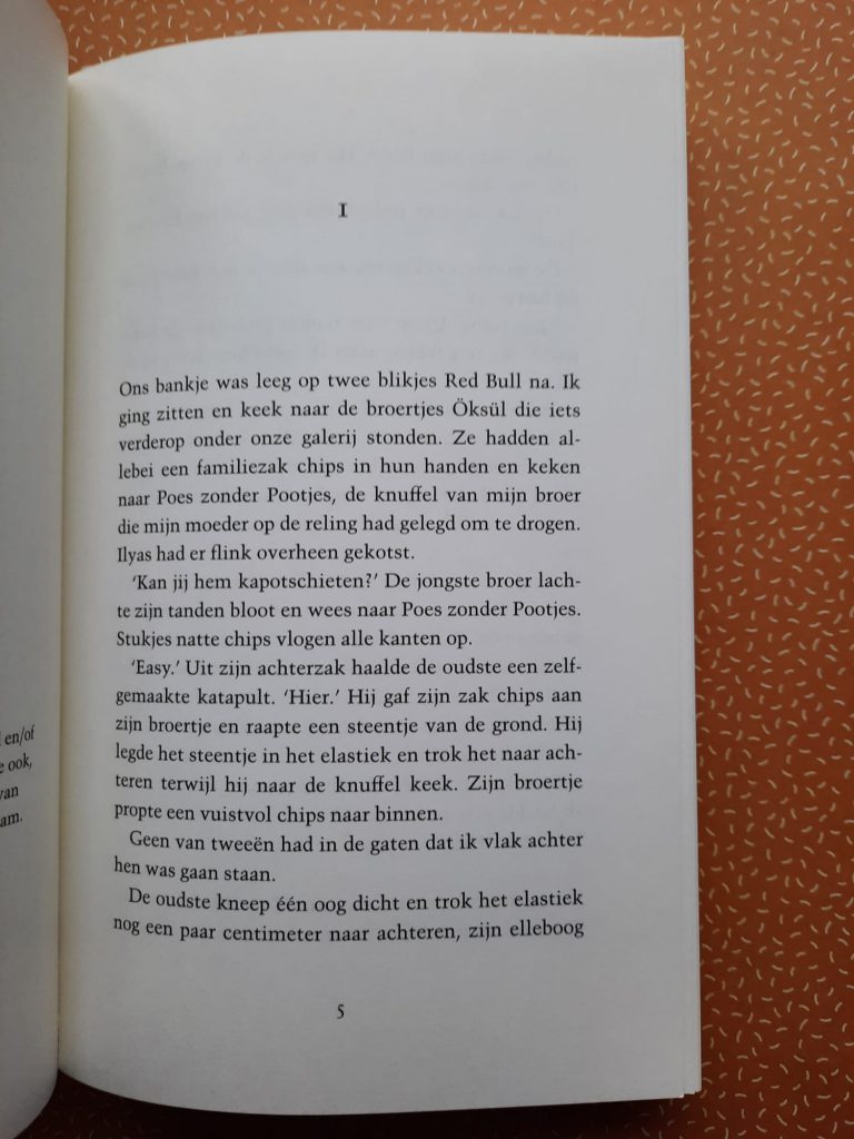 Ik heb ‘Vliegen’ met veel plezier gelezen. Door Umuts ogen is het ‘straatschoffie’ gedrag best logisch en helemaal niet zo gek. Maar hij bewijst zichzelf geen dienst door geen hulp te vragen en niet eerlijk te zijn. En belandt zo steeds verder in de problemen. ‘Vliegen’ is ook echt een liefdesverhaal. Tussen Umut en Linda, maar ook tussen Umut en zijn broer Ilyas en zijn ouders. Het goede willen doen, op een onhandige manier, dat is wat Umut probeert. Een jongen van de straat, met grootste vragen en dilemma’s die hij eigenlijk niet deelt.