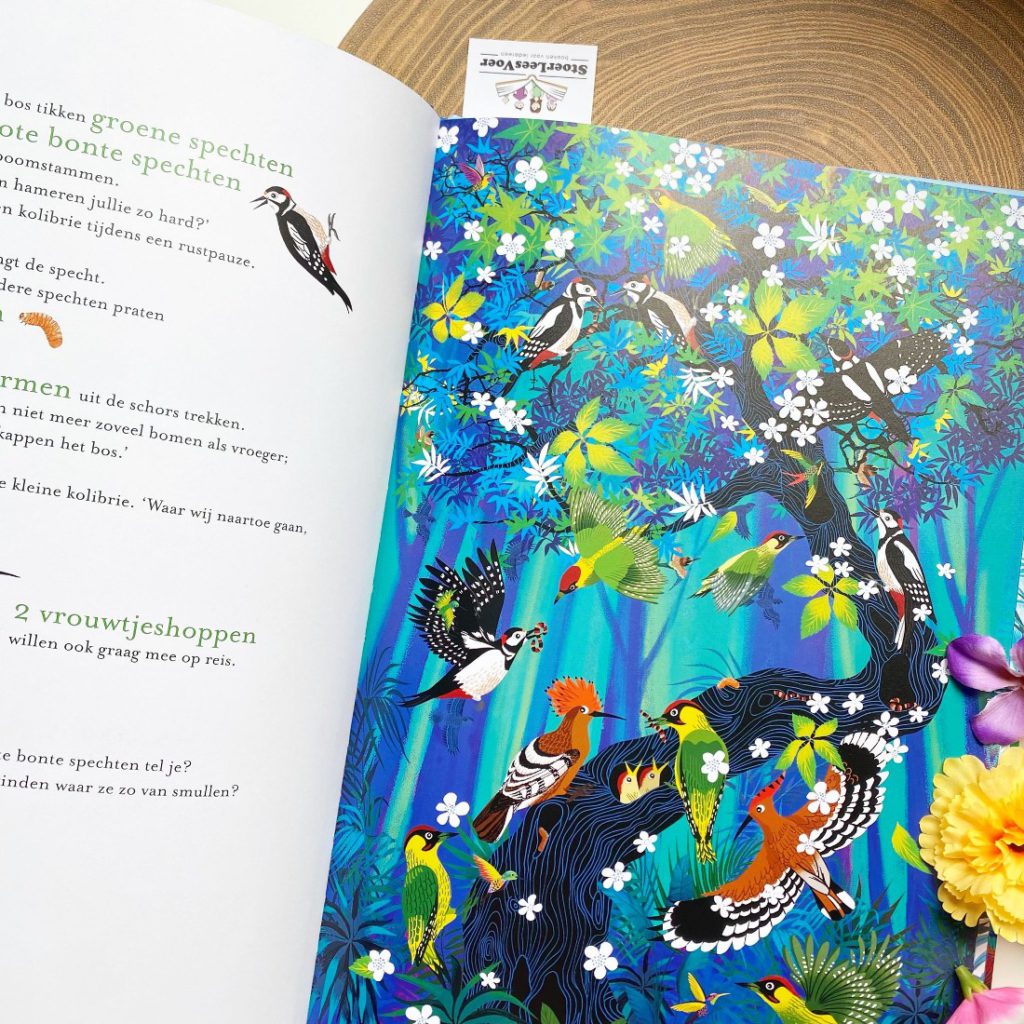 Vogels zijn echt het “ding” momenteel in mijn huis. Bij mijn oudste dochter is een roofvogelspecialist langs geweest en sindsdien is haar passie voor deze dieren ‘aan’. Met haar kleine klasje zaten ze op een grasveldje bij school en kwamen er diverse vogels zichzelf showen. Toen ik het prentenboek Vogeleiland zag wist ik om die reden dat ik deze wilde aanvragen ter recensie. Maar ook om de wonderschone cover. Wat een subliem gebruik van kleuren en wat een prachtige cover. Ook mijn aandacht had dit boek direct. Vliegen jullie mee naar Vogeleiland? Het is het waard kan ik al wel verklappen!