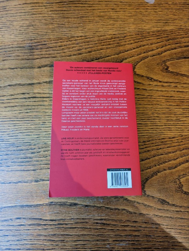 Al met al een sterk eerste deel! Line Holm en Stine Bolther zetten met ‘Voor onze zonden’ een mooie start neer voor hun misdaadserie. Deze zal gaan over de agenten Mikel en Frederik en Maria, Politiehistorica, die de agenten te hulp schoot. De drie hebben een bijzondere klik en vullen elkaar goed aan. Deel twee is inmiddels ook vertaalt en verschijnt binnenkort. Ik ben benieuwd waar dit trio dan in terecht komt.