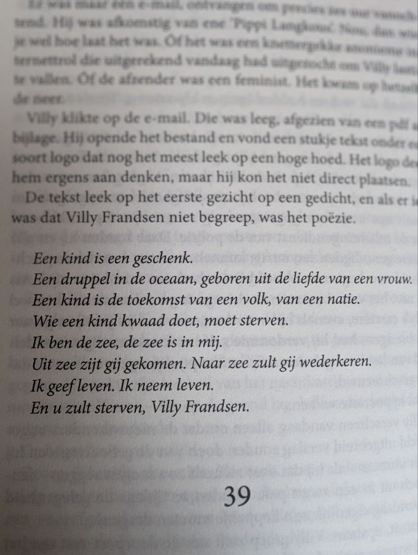 Toen ik eenmaal in het verhaal zat las het vlot, wist het mijn aandacht te grijpen en vast te houden. Het onderzoek vanuit agenten Mikael en Frederik wordt gevolgd in weken. In deze tijdsperiodes is het boek ook opgedeeld, dit geeft een heel andere kijk, weken is namelijk vrij lang bij zo’n grote zaak. Soms zitten er leerzame details in over het onderzoek, dit is erg professioneel beschreven en vond ik een pluspunt.