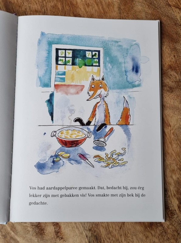 Bovenstaande tekst past ook gedeeltelijk op het boek Vos en Vis. Zo heeft Vos een heel eigen karakter, dat in elk boek uit deze serie prachtig naar voren komt. Dat zijn boeken diep gaan en licht voelen is absoluut ook van toepassing op dit boek. Ogenschijnlijk een ‘gewoon’ prentenboek, maar met diepere lagen.