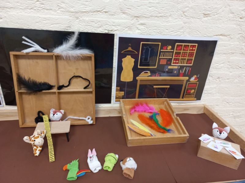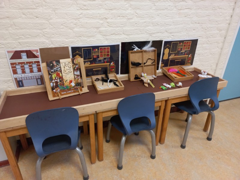 In de kleutergroep bij mij op school heeft de leerkracht een verteltafel gemaakt van Vos & Zoon. De kinderen spelen het verhaal na en kunnen op deze manier oefenen met de volgorde, interactie en de woorden. Wij vinden het op school belangrijk dat er genoeg gepraat wordt als we een boek aanbieden. Een verteltafel leent zich daar uitermate goed voor!