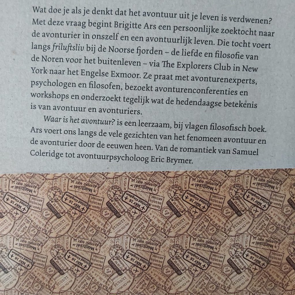 Door de persoonlijke schrijfstijl Van Brigitte Ars krijg je direct een groot saamhorigheidsgevoel. Door het delen van al haar reiservaringen, de mensen die ze mocht ontmoeten, de wijsheden die ze refereert van verschillende avonturiers en filosofen besef ik me dat het woord ‘avontuur’ inderdaad groter blijkt dan het daadwekelijk is. Het staat zelfs op de achterflap van het boek: