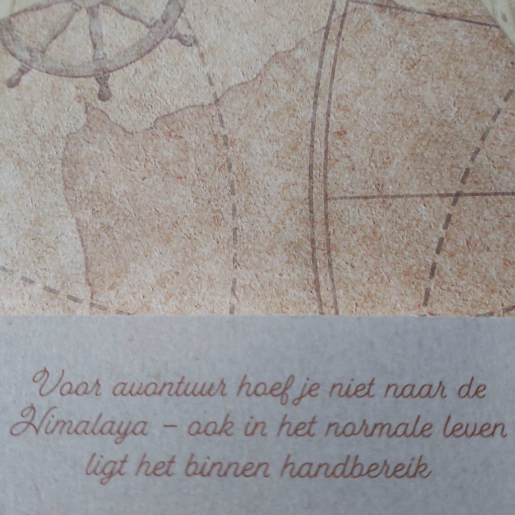 Voor dat ik aan het boek begon vroeg ik me eerst oprecht op wat het woord ‘avontuur’ nu echt inhoud. Het woord doet zo groots aan en herbergt voor mij een enorme verwachting. Misschien is dat dan ook datgene wat ik nu even mis; groots meeslepend avontuur in plaats van de dagelijkse routine. Maar tijdens het lezen van het boek ‘Waar is het avontuur’ kwam ik er al heel snel achter dat avontuur zo groot of zo klein is als jezelf toe laat.