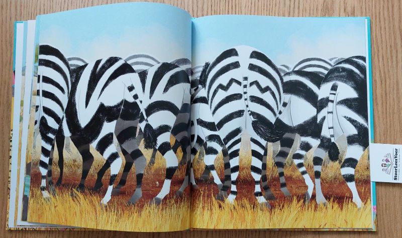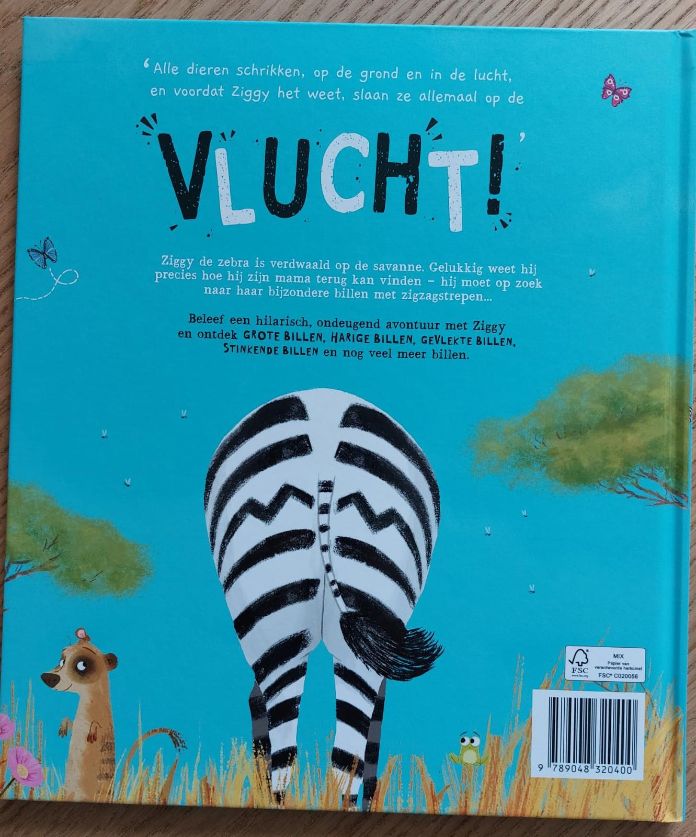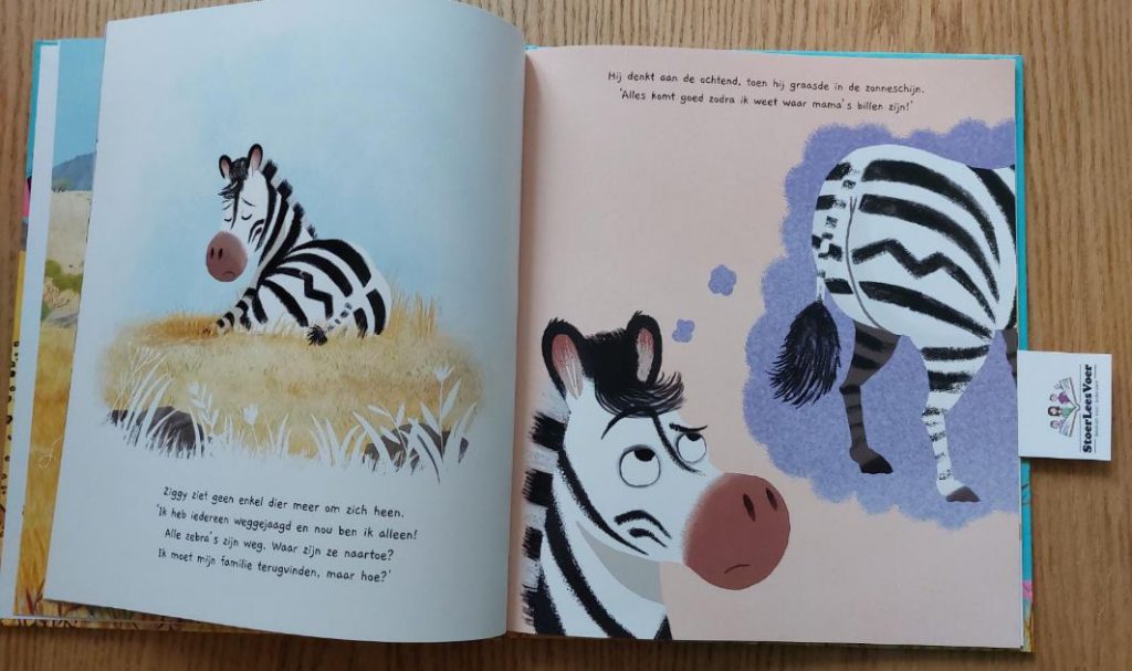 Alle dieren schrikken, op de grond en in de lucht, en voordat Ziggy het weet, slaan ze allemaal op de vlucht! Ziggy de zebra is verdwaald op de Savanne. Gelukkig weet hij precies hoe hij zijn mama terug kan vinden. Hij moet op zoek naar haar bijzondere billen met zigzagstrepen…