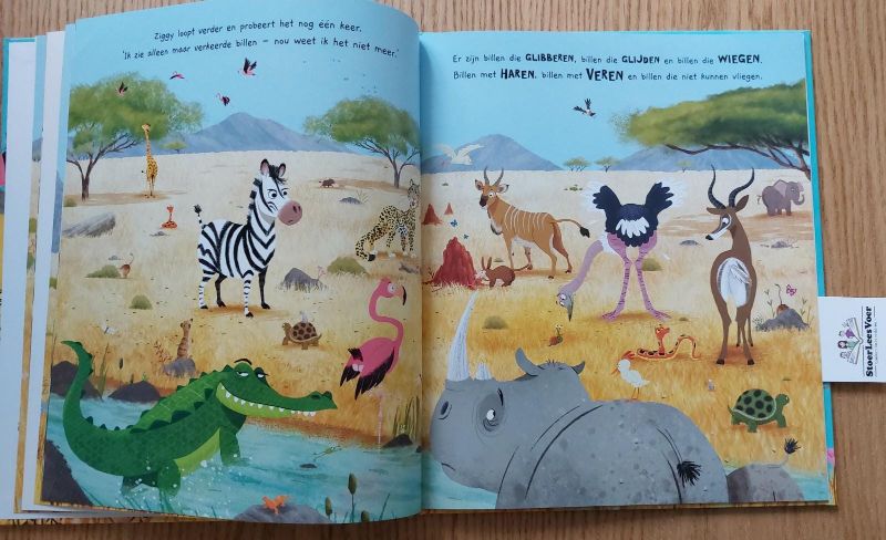 Waar zijn mama’s billen is een heerlijk prentenboek dat je interactief kunt voorlezen. Waar zou dit boek over gaan? Welke dieren zie je? Wat zijn zigzagstrepen? Waarom eet de leeuw Ziggy niet op?