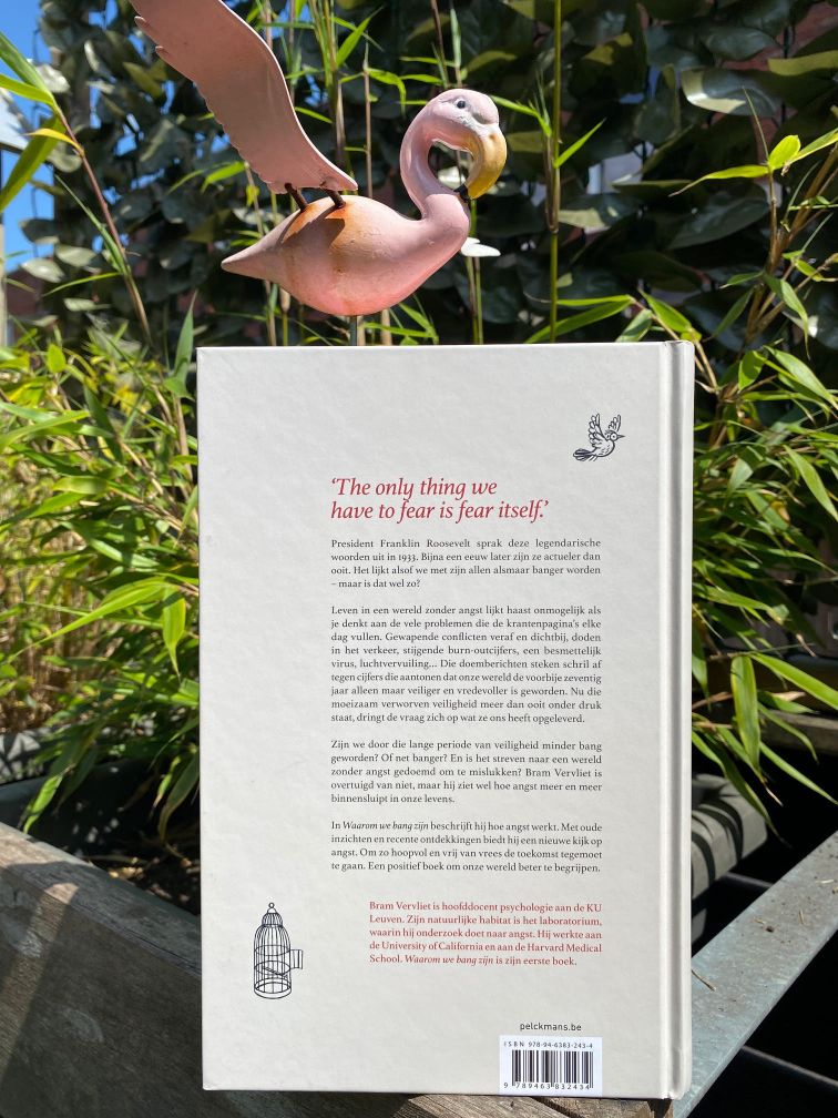 Waarom we bang zijn is geschreven door Bram Vervliet. Hij is psycholoog en hoofddocent psychologie aan de KU Leuven. Zijn natuurlijke habitat is het laboratorium, waarin hij onderzoek doet naar angst. Op zijn eerste boek staat voorop een vogeltje, in een kooitje met het deurtje open. Op de achterkant is datzelfde vogeltje uit de kooi gevlogen.