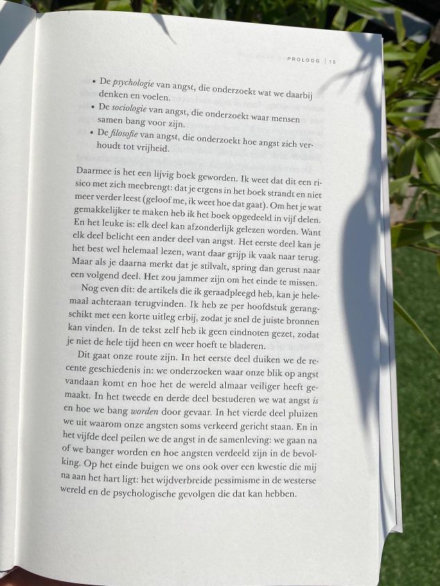 Ik zelf heb lange tijd met veel angst in het kooitje gezeten en vlieg nog steeds met vallen en opstaan. Kennis helpt daarbij. Ook als psychologiestudent vind ik emoties en angst(stoornissen) een interessant thema. Daarom was ik erg benieuwd naar Waarom we bang zijn. Dit boek is een onderzoek naar de oorzaken en doelen van angst. Angst wordt belicht vanuit de psychologie, maar ook vanuit de aangrenzende disciplines biologie, sociologie en filosofie.