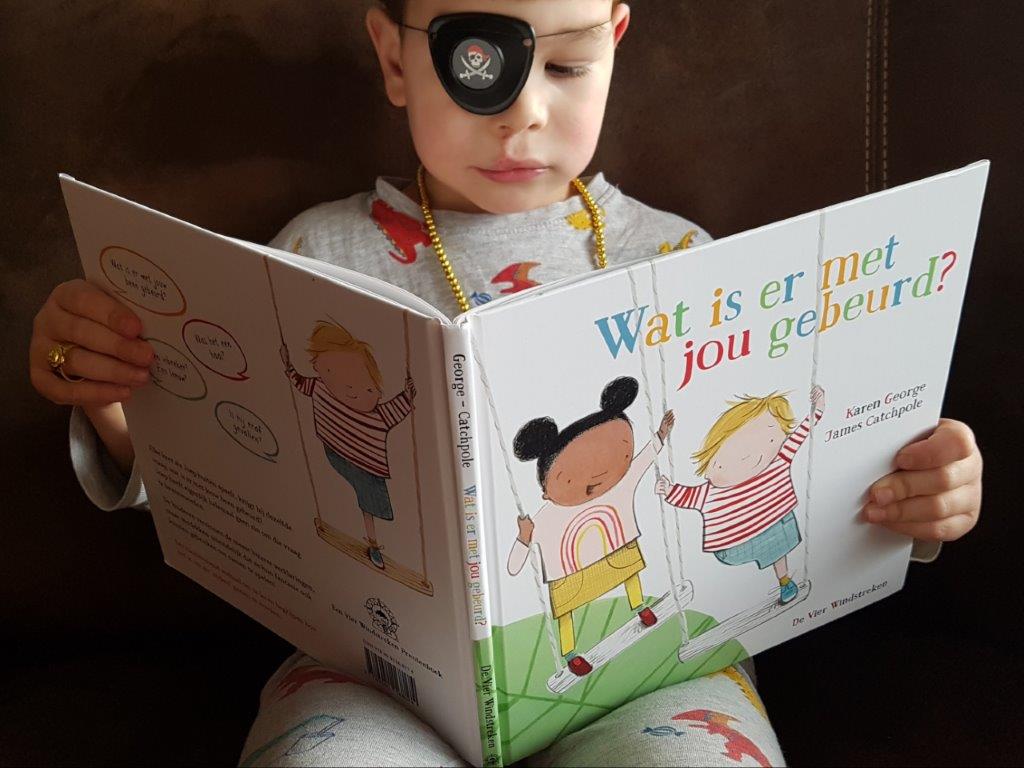 Een mooi verhaal vind ik, waarin mijn zoontje zich enerzijds (deels) in zou kunnen herkennen. Altijd fijn om te weten hoe je in bepaalde situaties het beste kunt handelen, aangezien de mens een sociaal wezen is. Anderzijds leert hij middels ‘Wat is er met jou gebeurd?’ ook hoe je het beste om kunt gaan met mensen die er in zijn ogen anders uitzien.