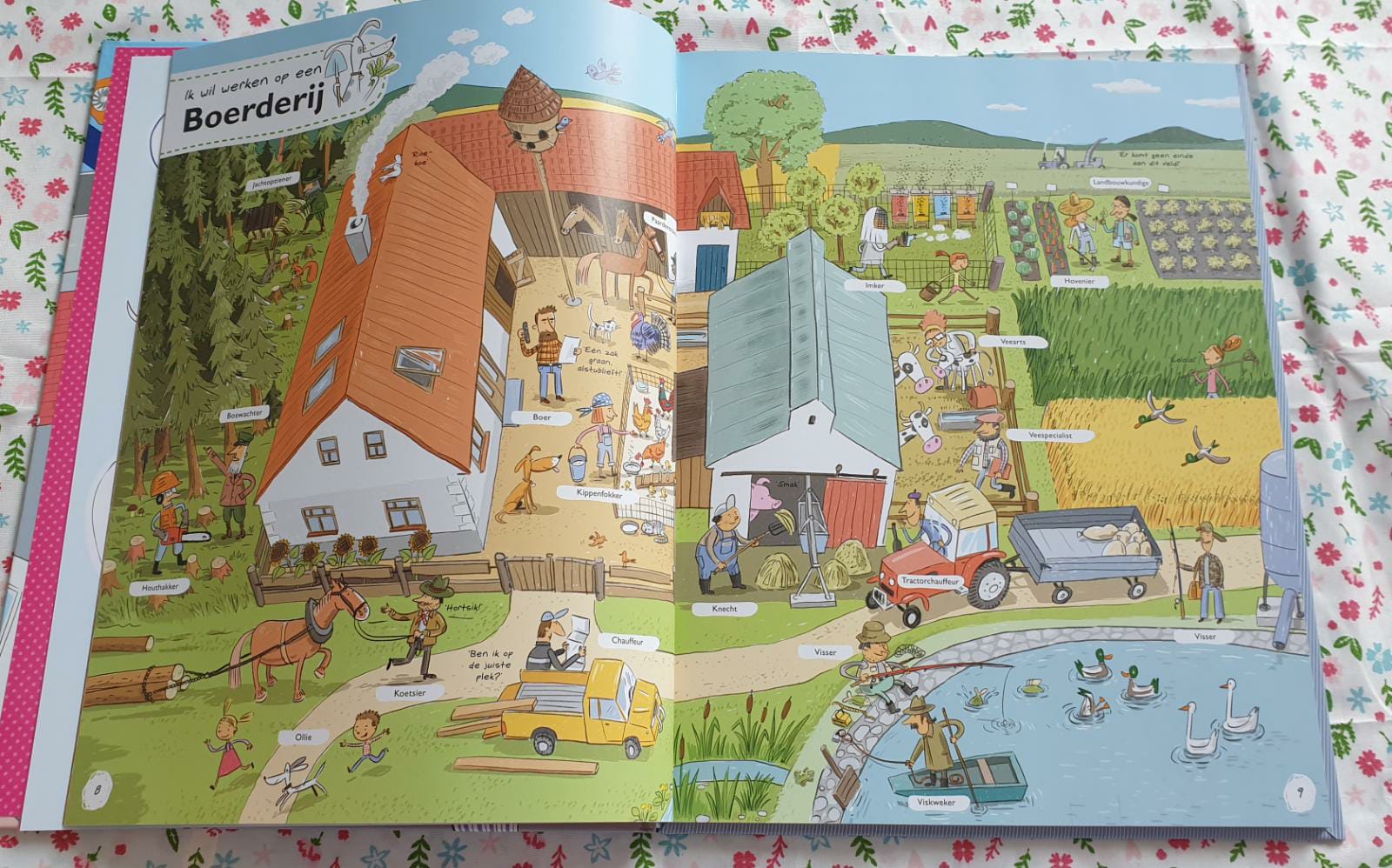 Het is niet echt een leesboek wat je van voor naar achteren leest, of een voorleesboek om aan de klas voor te lezen. Dit boek dient echt als informatief boek, een naslagwerk voor kinderen om informatie te verzamelen. Handig voor spreekbeurten, collages over beroepen en werkplekken en natuurlijk ter inspiratie om te bedenken wat ze later worden willen.