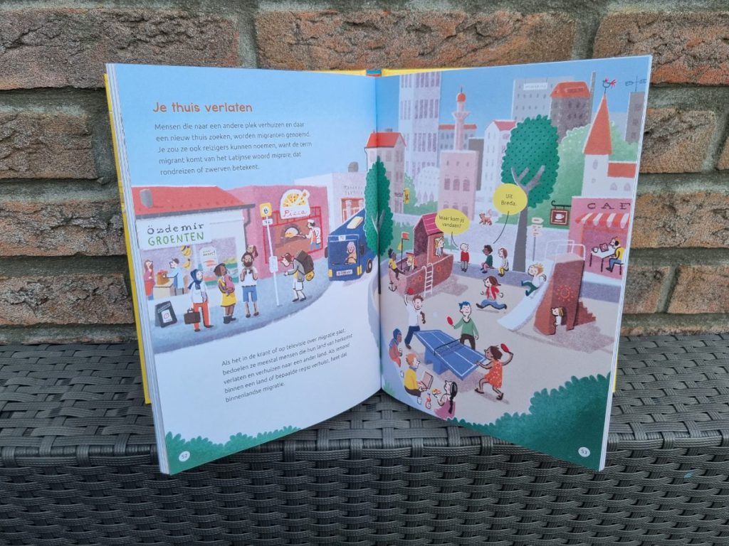 Zoek jij een boek voor je klas of je kind over wonen, leven, weggaan en/of aankomen? Is je kind ouder dan 8 (of ietsje jonger en houd jij van voorlezen?). Dan is per definitie dit boek geschikt! Het is echt een onmisbare titel voor de kinderboekenweek 2023, maar eigenlijk sowieso voor je schoolbibliotheek. Er staan rijke teksten in, met zoveel woordenschatmogelijkheden, aansprekende plaatjes en op elke bladzijde heb je genoeg te praten met kinderen over wat ze lezen en zien. Een aanrader dus!
