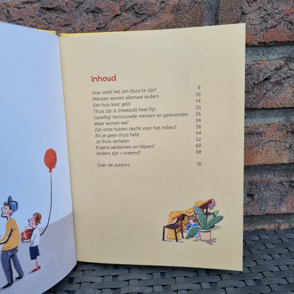 Het sterke aan Wat is thuis? is het veelzijdige perspectief van wonen. Elk (t)huis is anders en dat wordt op verschillende manieren zichtbaar gemaakt in het boek. In de inhoudsopgave zie je dit goed terug. Je kunt de hoofdstukken goed los van elkaar lezen en wellicht gebruiken in de klas bij een tekstles over dit onderwerp. In elk hoofdstuk komen geschiedenis (mooie vergelijkingen tussen toen en nu), aardrijkskunde (met landelijk, Europees en werelds perspectief), levensbeschouwing (verschillende culturen, filosofische vragen) en burgerschap terug. Heel passend dus voor een schoolse setting, maar absoluut ook om thuis met je kind samen te lezen.