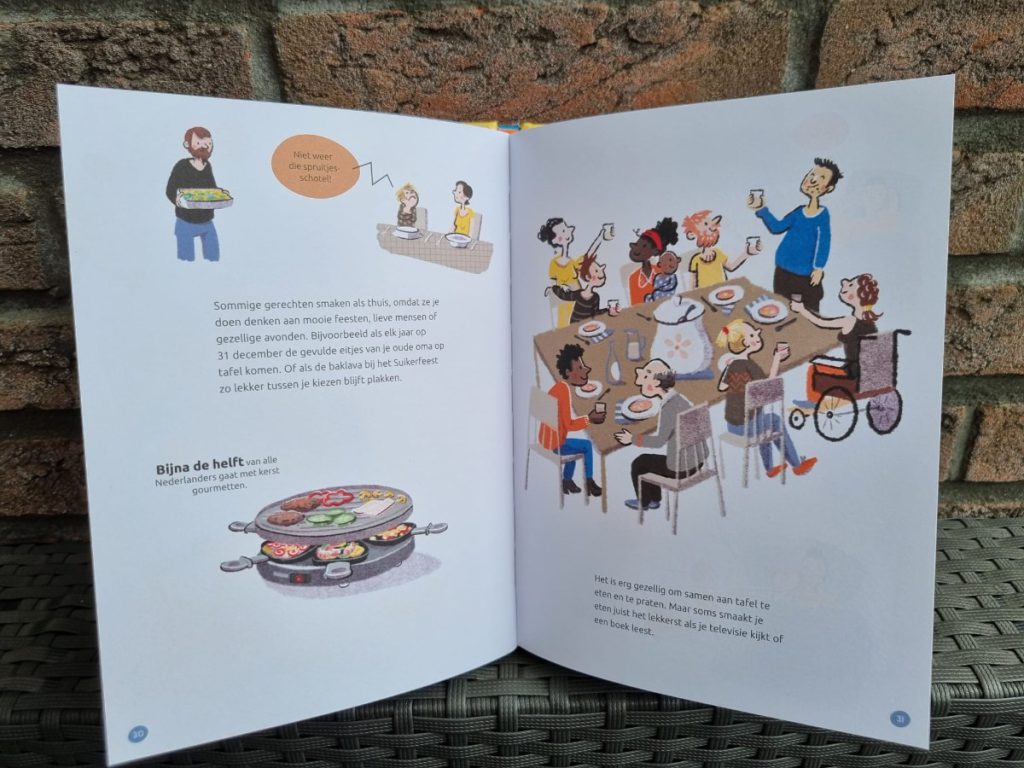 De ondersteuning van de illustraties van Lena Hesse zijn ontzettend helpend. Daarnaast zijn ze ook nog eens grappig. Je ziet dat de tekst van Kristina Scharmacher-Scheiber heel goed to the point is en duidelijk is en dat er in de illustraties een prettige kwinkslag zit. Maar deze is altijd ondersteunend, dus niet grappig om het grappig zijn, en vooral vaak ook pijnlijk direct. Zo is er een plaatje van 2 mensen (een oudere witte vrouw en een donker jongetje), waarbij de vrouw tegen het jongetje zegt: “Wat spreek jij goed Nederlands”. Het jongetje zegt: “Bedankt. U ook”.