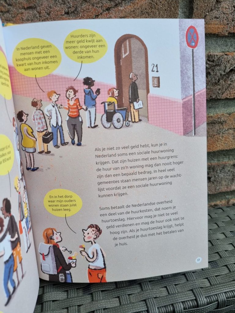 Het is knap hoe de auteur en illustrator verschillende perspectieven vangt, maar tegelijkertijd diepgang weten op te zoeken. Dat had ik eerlijk gezegd niet verwacht bij een boek van deze omvang. Toch heb ik er zelf ook echt iets van geleerd. Zo weet ik nu wat gentrificatie is. Je zult dus zien dat het boek voor iedereen in je klas nieuwe informatie oplevert en ook haakjes zal vinden om nieuwe informatie aan op te hangen. Dit komt omdat er basisinformatie en goede verdieping wordt gegeven in de tekst.