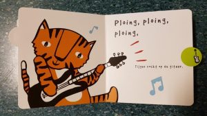 Boekjes met knopjes waar geluiden uitkomen, waren sowieso al favoriet, maar met mama op de air-gitaar wordt het lezen helemaal een feest. Op iedere bladzijde staat een ander muziekinstrument met een bijbehorend knopje om het geluid daarvan mee af te spelen. Iedere avond voor het slapen gaan is het wéér hetzelfde liedje. De solo’s op de piano doet mijn zoontje inmiddels al helemaal zelf en ook het drummen gaat hem heel goed af. Het trompetteren moeten we allebei nog wat meer feeling voor krijgen voordat we helemaal los kunnen gaan. Maar daar wordt hard aan gewerkt. Dit lievelingsboekje Beng, beng, boem! We maken muziek, gaat gewoon mee naar de camping en daar zal vanzelf wel blijken of we talent hebben! 😉