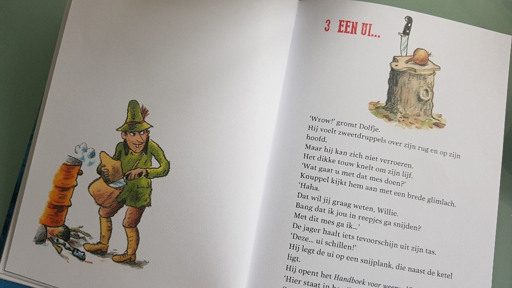 Terwijl Knuppel ingrediënten aan het verzamelen is, probeert Dolfje hem af te leiden door spannende verhalen te vertellen. Knuppel noemt Dolfje de hele tijd Willie, iets wat dochterlief in het begin wat lastig vond.