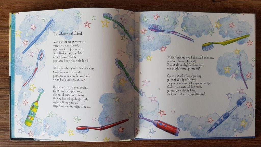 Het tandenpoetslied kun je hier beluisteren, een geslaagd boek om de komende jaren er regelmatig eens bij te pakken.