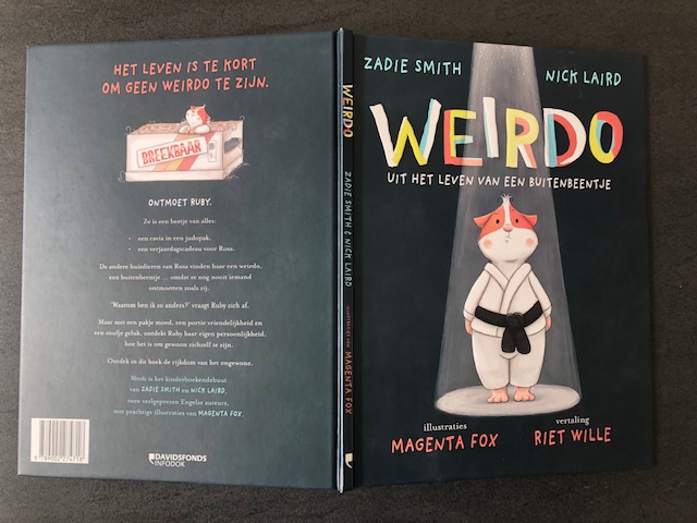Weirdo, van Zadie Smith, gaat over hoe het voelt om een buitenbeentje te zijn. En hoe dat uiteindelijk toch weer goedkomt. Het begint met een verrassing in een judopak. Daarop volgen vooroordelen, waardoor deze verrassing zich niet gewenst voelt. Tegenwoordig is anders zijn de norm geworden in mijn beleving. Juist als je gemiddeld bent wordt je als een weirdo gezien heb ik het idee. Maar goed. Weirdo van Zadie Smith is een leuk boek over een cavia in een judopak die, uiteraard, een belangrijke les leert. En laten we ook Nick Laird niet vergeten. Echtgenoot van Zadie Smith en co-auteur van het boek.
