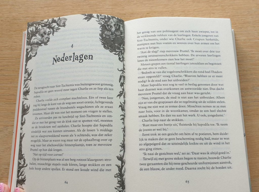 Met een zucht leg ik het tweede deel van de magische wereld van Charlie neer. Nu moet ik weer een jaar gaan wachten op het derde deel. Hoe krijgt Audrey Alwett het toch voor elkaar om boeken te schrijven waarbij je het boek het liefst in 1 keer uit wil lezen en al bij de paar laatste hoofdstukken het angstige maar toch ook blije gevoel krijgt dat het verhaal nog niet is afgelopen. Welkom op Sint Tughtemis is een spannende mysterie waarin beetje bij beetje de magische wereld van Thadam steeds meer vorm krijgt. Voor liefhebbers van boekenseries als Harry Potter is deze boekenserie echt een aanrader!