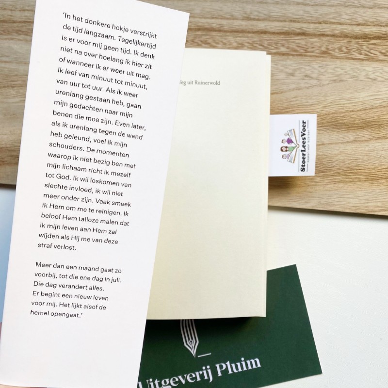 “Op zondag 13 oktober 2019 verliet ik de boerderij waar ik jarenlang vastzat en stapte een café in Ruinerwold binnen. Op dat moment maakte ik me definitief los uit de geloofswereld van mijn vader, die mij vijfentwintig jaar lang in zijn macht had. In ‘Wij waren, ik ben. Weg uit Ruinerwold’ beschrijf ik mijn leven. Mijn vaders geloof en overtuigingen waren mijn realiteit: naar school ging ik niet, ik bestond niet eens voor de buitenwereld, en ik had geen vrienden. Er waren alleen de geesten die om ons heen dwaalden en waarmee we praatten. Bidden was onze enige redding, God zat altijd in mijn hoofd.”
