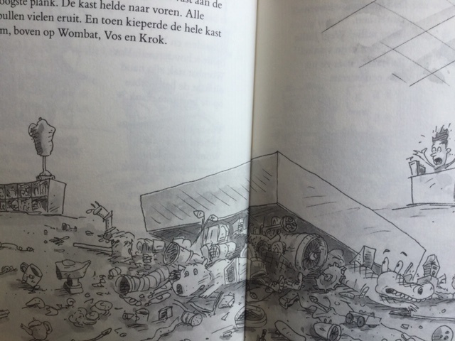 Verder is het in Wombat en Vos avonturen in de stad grappig dat Vos zich heeft verkleed als een superheld. Dat is vooral leuk in het tweede hoofdstuk waarbij vos steeds de bal niet in het goal kan schieten. Want tja… wat ben je voor superheld als je niet eens kunt voetballen! Ik vind de illustraties in dit boek beter dan die in de Waanzinnige boomhut. Ik vind het wel een erg goed boek: de verhalen zijn lang genoeg, veel humor en mooie tekeningen. Wat vindt mijn zusje (6) van het boek? “best grappig”. Want? “De dieren kunnen praten.