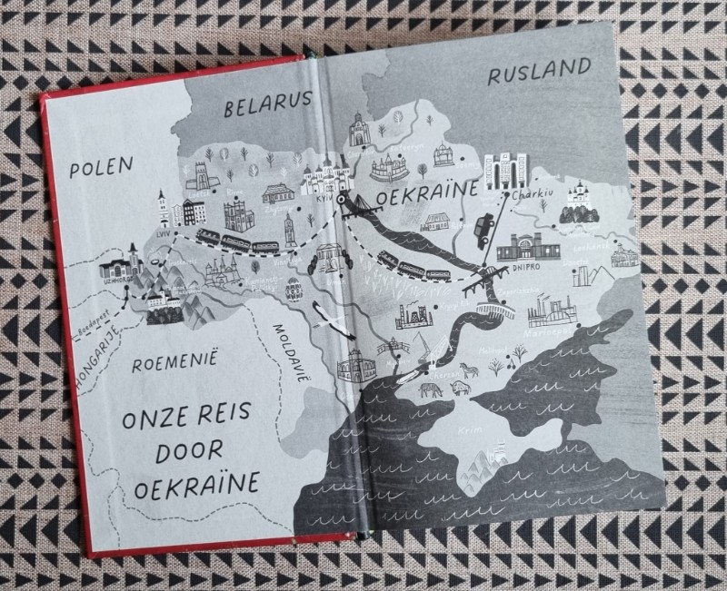 Naast de inhoud is Yeva’s dagboek ook heel toegankelijk door de opbouw van het boek. Het is een mooi gebonden boek en het ziet er aantrekkelijk uit door het kleurgebruik en de foto van Yeva op de voorkant. Dit maakt dat het kinderen zal aanspreken. Aan de binnenkant van de omslag zie je een getekende kaart van Oekraïne en de omliggende landen. Ook staat er een kaart van Charkiv, ook wel Charkov genoemd zo lees ik in de noten achterin, met daarin alle gebouwen waar Yeva gebruik van maakt. Denk aan haar huis, haar school, het park, etc.