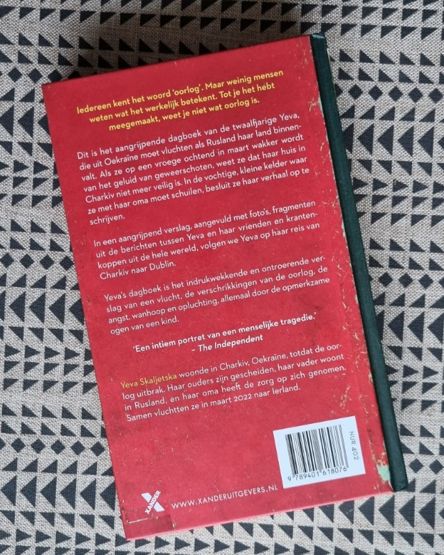 In één ruk heb ik Yeva’s dagboek uitgelezen. Haar eigen verhaal over het begin van de oorlog in Oekraïne en haar vlucht samen met haar oma. Door het lezen van dit boek vloog mij deze oorlog naar de keel. Al zoveel heb ik er over gelezen en gehoord, maar nu kreeg deze oorlog voor mij echt een gezicht. Zo overduidelijk op haar eigen manier verteld, met soms van uur tot uur haar gedachten en belevenissen. Nooit kwam ik zo dicht bij de oorlog.