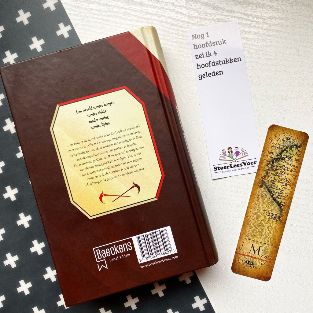 Wauw, ik zet dit krachtige vier letterwoord weer graag in. Wat heb ik genoten van Zeis. Vooraf had ik niet verwacht dat ik het zo goed zou vinden. Het verhaal, een dystopie (of utopie?) van een wereld zonder honger, zonder ziekte, zonder oorlog en zonder lijden. Maar met Zeisen. Want ook de dood is overwonnen. Het boek roept vele interessante vraagstukken op, en had ik al gezegd dat ik ervan genoten heb? Zelfs twee keer in een intro is nog te weinig.