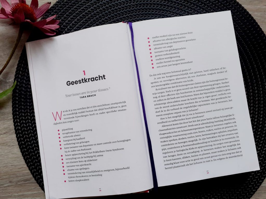 Het is inspirerend om te lezen wat er allemaal mogelijk is. Maar het optimaliseren van je gezondheid door de genoemde technieken valt of staat met herhaling. Dit komt doordat je hersenen nieuwe neurale verbindingen moeten aanleggen. Het kan dus best moeilijk zijn om in je dagelijks leven te integreren. Maar na het lezen van dit boek kun je alleen maar concluderen dat het zeker de moeite waard is. Bij chronische klachten, een ernstige ziekte of bij het moeten ondergaan van een operatie. Verdiep je in de mogelijkheden, en gebruik het naast je reguliere behandeltraject. Van de ziekte van Parkinson, tot allergieën, Burn-out, depressie, chronische pijn en ontstekingen. Er zijn heel veel gebieden waarop de technieken toegepast kunnen worden.