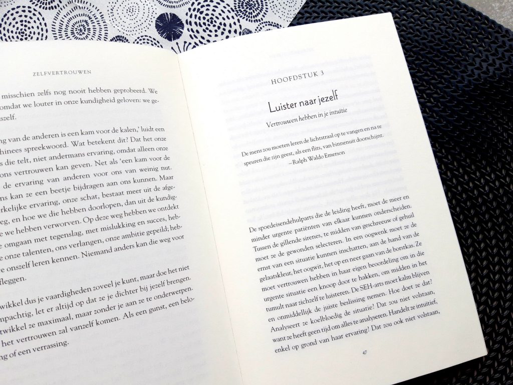 In dit boek vind je geen stappenplan of iets dergelijks om aan je zelfvertrouwen te werken. Wel lees je mooie inzichten, die je blik verruimen en waar je zeker iets aan kunt hebben. Zoals de beschrijving over het werken en creëren met je handen. Dit kan enorm positief zijn voor je zelfvertrouwen. In onze tijd van Social Media en managementfuncties verleren we het steeds vaker. Hoe het voelt om iets te maken.