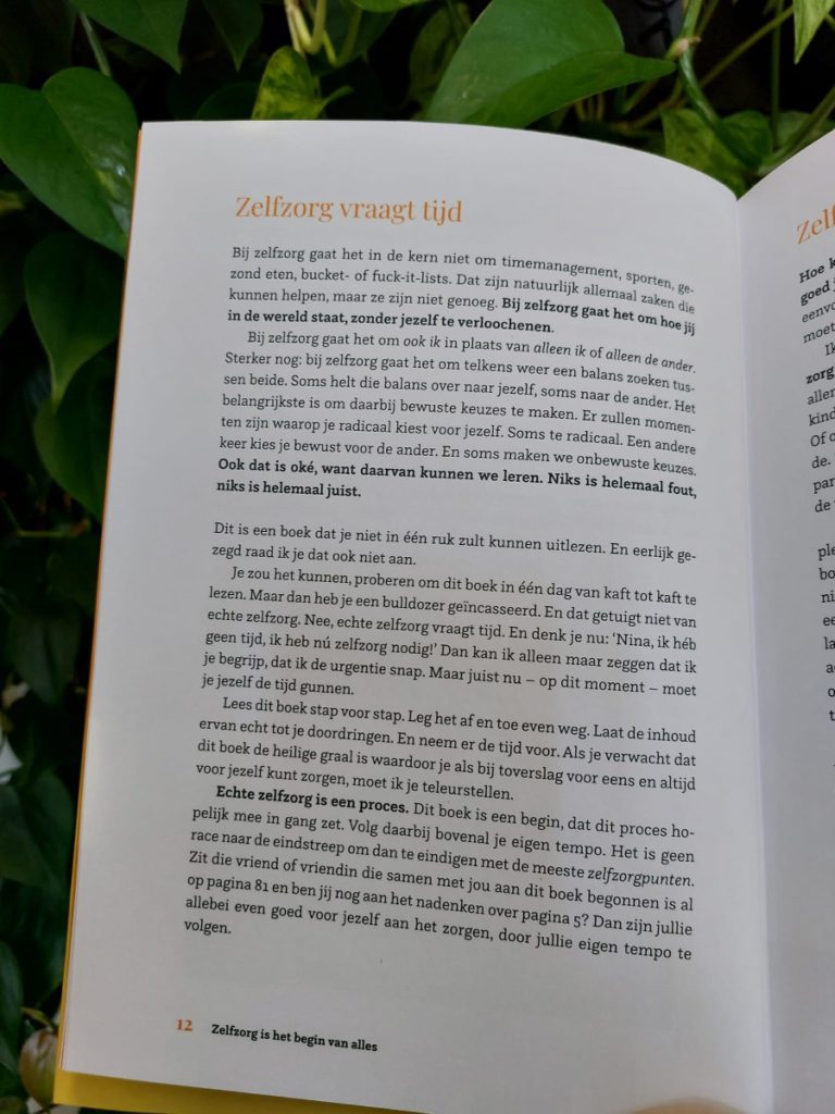 Het boek gaat over het belang van zelfzorg in ons dagelijks leven en hoe we beter voor onszelf kunnen zorgen. Het boek bevat advies, tips en strategieën om stress te verminderen, meer ontspannen te leven en een betere balans te vinden tussen werk en privé.