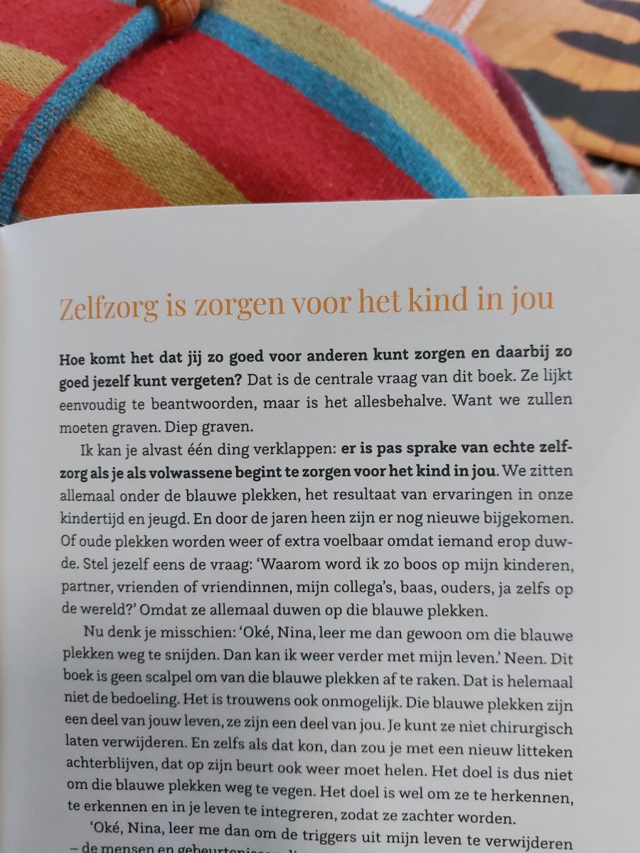De centrale vraag van dit boek luidt: “Hoe slaag je erin om zo goed voor anderen te zorgen en tegelijkertijd jezelf te vergeten?” Ik kan je alvast één ding verklappen: echte zelfzorg begint pas wanneer je als volwassene leert zorgen voor het kind in jezelf. We dragen allemaal de littekens en blauwe plekken van onze ervaringen uit onze kindertijd en jeugd. Deze littekens beïnvloeden ons leven op een blijvende manier, en dat is op zich geen probleem, want ze vormen wie we zijn. Het is echter belangrijk dat we deze littekens leren herkennen, erkennen en integreren in ons leven, zodat ze zachter worden.