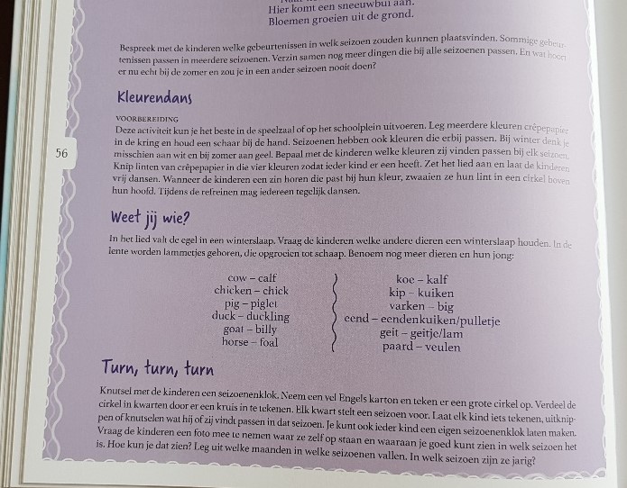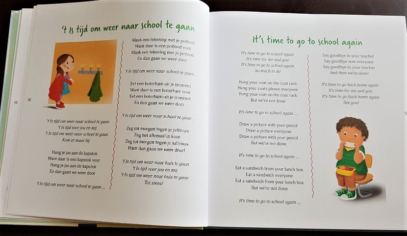 Als eerste wordt het Nederlandse lied aangeboden. Vergezeld van aanvullende activiteiten als spel, dans, drama en opdrachten. Hebben ze dit onder de knie dan bied je het Engelse liedje aan. Op een heel speelvolle manier leren ze hun Engelse woordenschat uit te breiden.