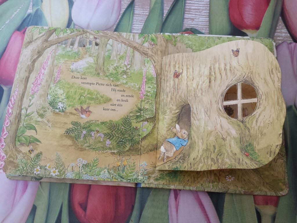 Er zijn heel veel dieren te ontdekken en de illustraties zijn prachtig. Naast alle doorkijken zitten er ook 2 flapjes in. Fijn getekend en stevige kartonpagina’s. Een echte musthave voor Beatrix Potter fans met kleine (klein)kinderen.