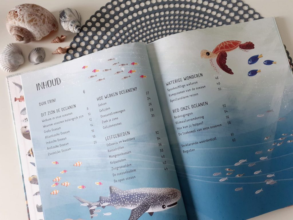 Er zijn vijf grote oceanen, die zich pas honderden miljoenen jaren nadat de aarde ontstond, vulden met water. Tegenwoordig zijn alle oceanen met elkaar verbonden, maar elk met hun eigen stromingen en flora en fauna. Alle oceanen hebben een apart hoofdstuk met informatie en prachtige illustraties. Even op een rijtje welke oceanen er ook alweer zijn: